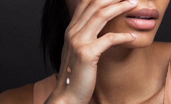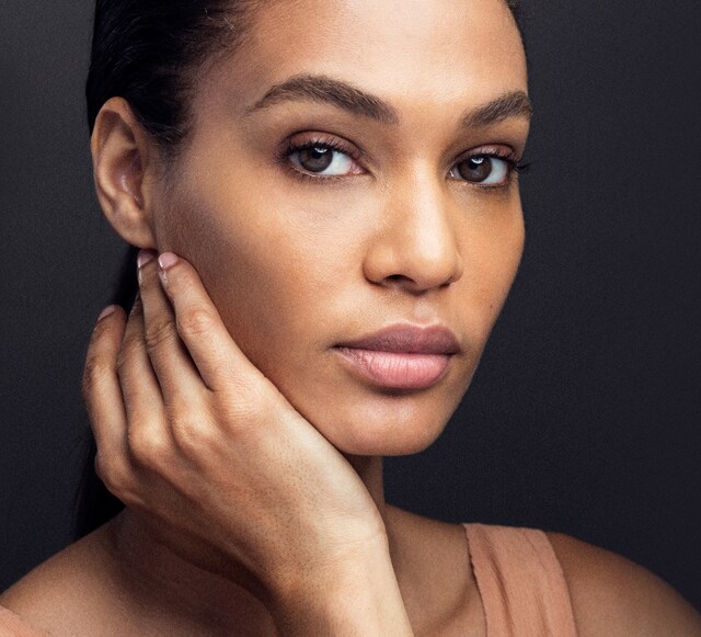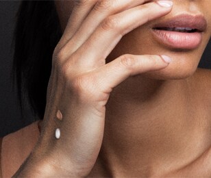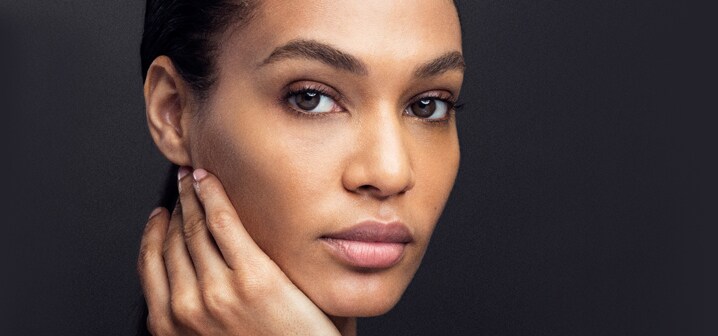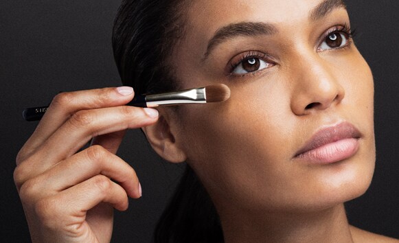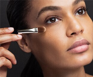 Apply extra concealer if needed, including at inner and outer eye corners. With a brush-on highlighter, draw a small “C” on