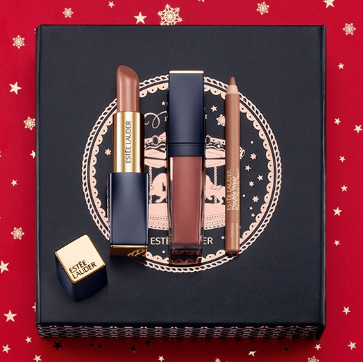 Define lips with Double Wear Lip Pencil in Nude. Then fill in lips.