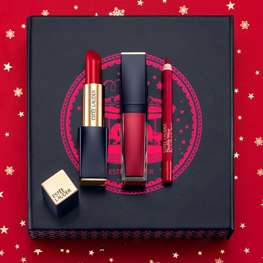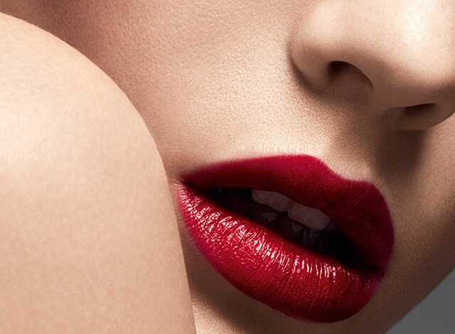 Define lips with Double Wear Lip Pencil in Red. Then fill in lips.