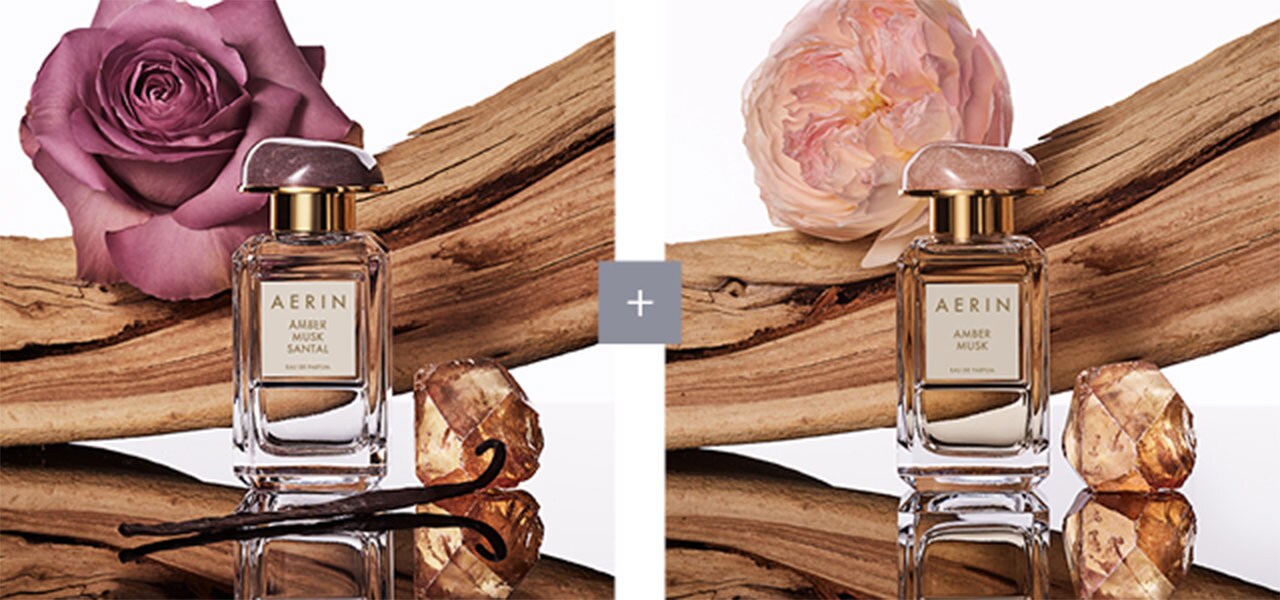 AERIN's Fragrance Collection is a wardrobe of distinctive perfumes inspired by Aerin's own travels, experiences and memories. Amber Musk Santal is an Amber Woody perfume inspired by the magic of a fall evening by the fireplace.